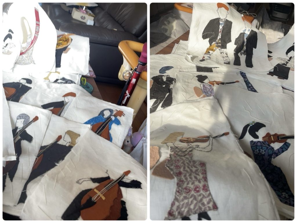 一通り、お孫さんへのプレゼントを作り終わって 「自分のために」作りたいものはなんとフルオーケストラの絵キルトでした。