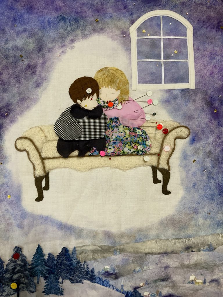 Kさんらしい、温かで丁寧な絵キルト、2作目制作中。