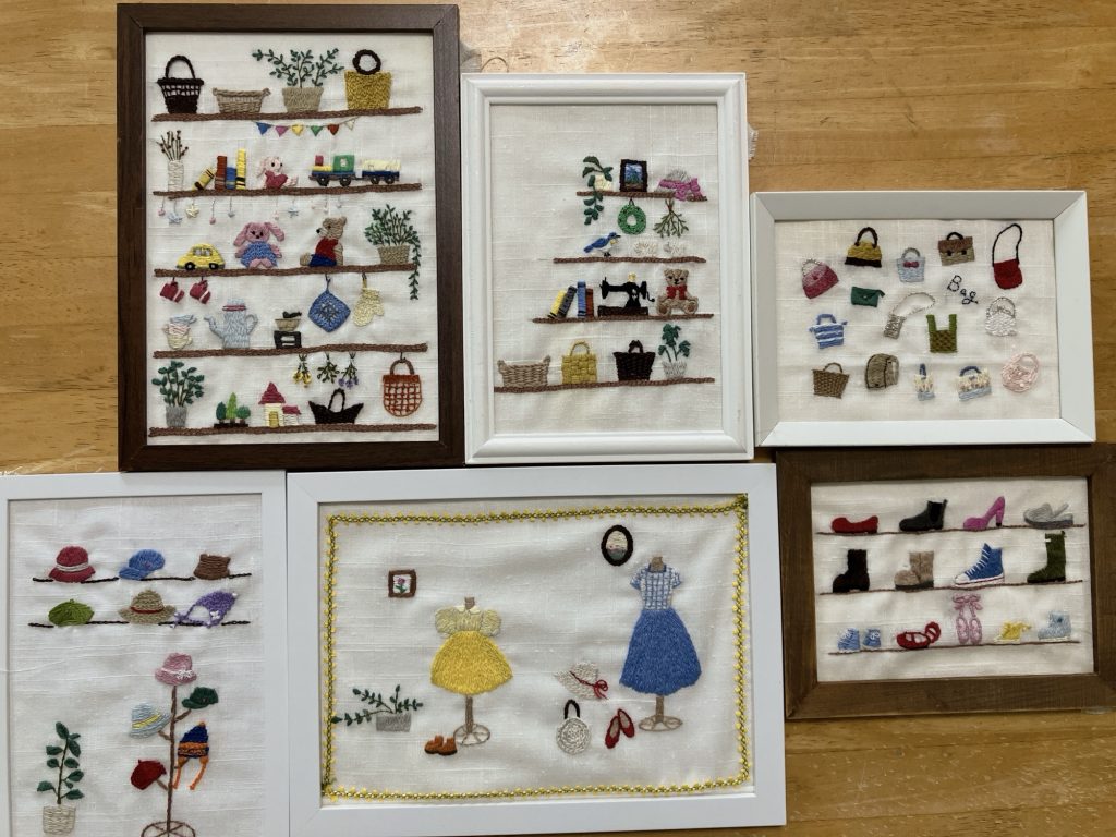 一つ一つが市販の刺繍アップリケ?みたいな細かい絵柄を 主に「ショート&ロングステッチ」で丁寧に刺していかれます。